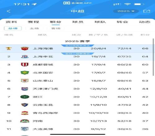 2025中超落幕!排名奇观:前7和上赛季完全一致