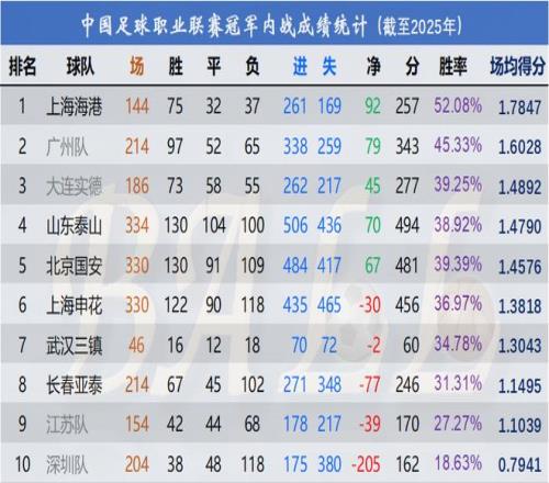你们不要再吵了!中超&甲A十大冠军对战成绩全览:谁是真强者