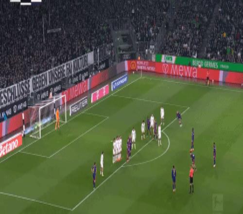 本赛季拜仁开局就暴走,上来就一波9连胜,这个月初才在客场被柏林联合逼平终止了连胜,然而追赶拜仁最紧的莱比锡那轮却在客场输了球。上周末拜仁和莱比锡都赢球及时止住颓势,今天莱比锡要想不被拜仁继续拉大分差(拜仁本轮主场对阵降级区弱旅,全取3分问题不大),那么就要在客场击败门兴。开场后莱比锡果然是反客为主展开猛烈攻势,第9分钟,莱比锡获得禁区弧顶前位置不错的任意球机会,劳姆操刀主罚大力兜射,这球没有压住,虽然绕过了人墙,但也高出横梁飞出底线。