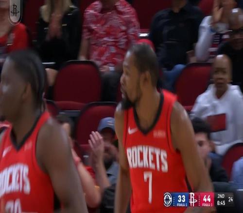 这是两队背靠背的第二场,背靠背G1时快船为了备战这场G2提前5分42秒投降让主力们休息,而火箭主力都打满了全场,毕竟快船第三阵容打得比第一阵容更好,从体能方面来看快船还更好一些,可34岁的伦纳德与37岁的杜兰特开场都连连打铁,这两位老将还是受到背靠背的影响,首节小卡4中0拿2分,首节KD3中0拿0分。