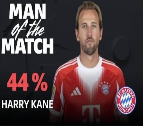 打入反超进球,凯恩当选莱比锡vs拜仁全场最佳球员 -